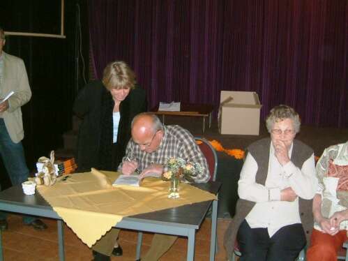 aanwezigen om ook de schrijver te feliciteren!