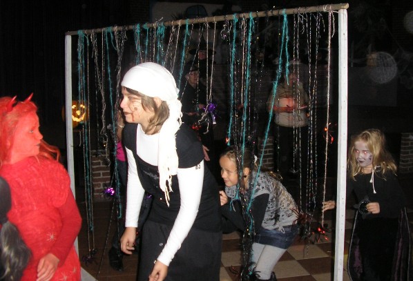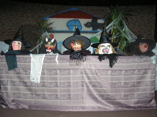 HET SPOOKT IN DE HEUGTE Woensdag 28 oktober jl. spookte het behoorlijk in ‘De Heugte’. Vele kinderen waren die middag gekomen naar het Halloween Dansfeest wat georganiseerd werd door de Kinderclub. De kinderen waren prachtig verkleed. De één was niet griezeliger dan de ander. Voor degene die het mooist en engst verkleed was waren prijsjes beschikbaar gesteld. Een deskundige jury zou hiervoor komen maar was nog niet gearriveerd in het dorpshuis. Er werd luidkeels geroepen om de jury maar deze liet nog wel even op zich wachten. Opeens kwamen ze tevoorschijn, het bleek dat ze al die tijd al in de zaal aanwezig waren. Ze hadden zich namelijk verscholen achter de maskers die op het podium stonden.