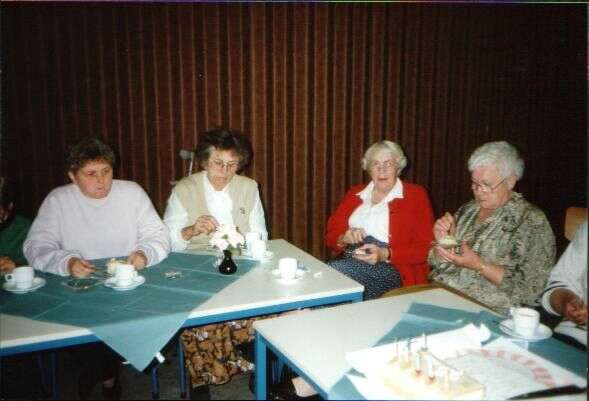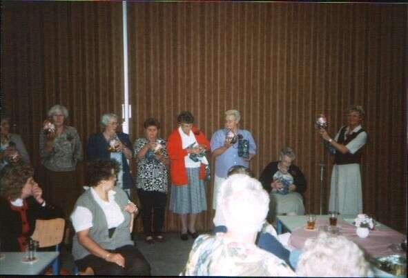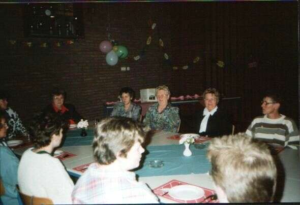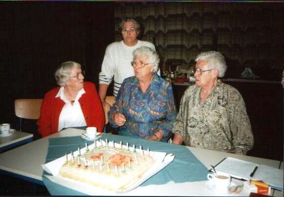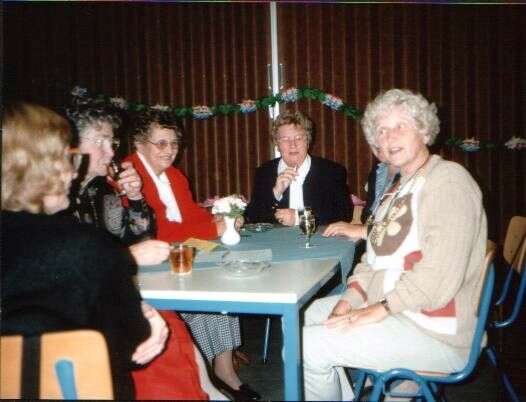 ![]() De jubelarissen worden toegesproken ![]() De leden kijken toe. ![]() Gezellig onder elkaar. ![]() De jubelarissen krijgen een glazen stopfles met logo van de bond en 25 jaar lid. ![]() Gezellig bij elkaar. ![]() Gezellig wat drinken. ![]() Jenny Kats. Jantje Veldkamp. ![]() Jo Stegehuis. Niesje Zomer. Boukje Koekoek. Aaf Sallomons. Hilly Oelen. Annie Ham. Henny Kats ![]() Boukje Koekoek. Jose Post. Jantje Faken. Frieda Salomons. ![]() Nu met zijn allen naar Jan van der Meulen die woonde in het voormalige Cafe Kleine Annie Ham. Jantje Veldkamp. Rina Stegehuis. Gieny Wielink. Aaf Sallomons. Jan van der meulen.