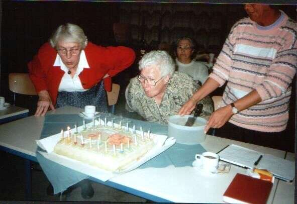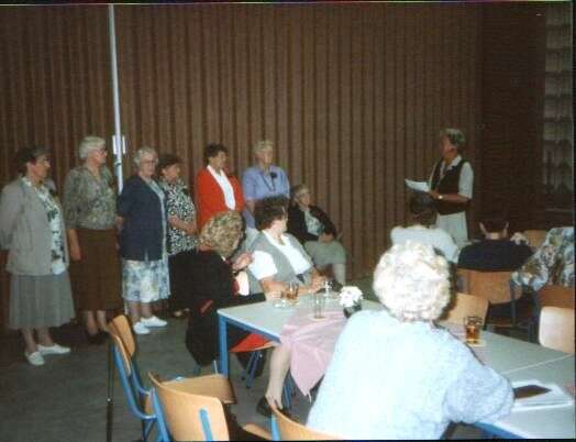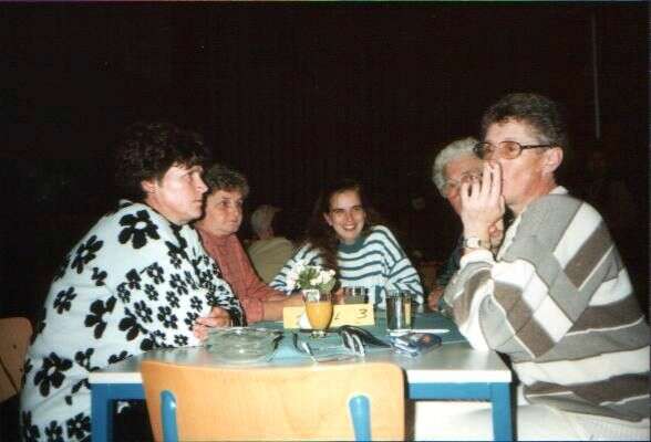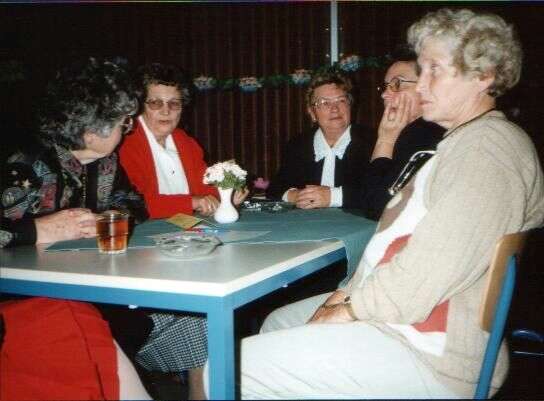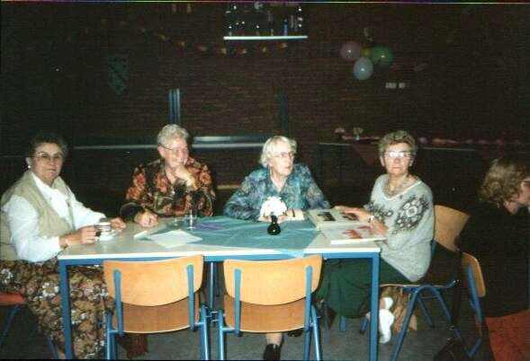 ![]() De jubelarissen worden toegesproken ![]() De leden kijken toe. ![]() Gezellig onder elkaar. ![]() De jubelarissen krijgen een glazen stopfles met logo van de bond en 25 jaar lid. ![]() Gezellig bij elkaar. ![]() Gezellig wat drinken. ![]() Jenny Kats. Jantje Veldkamp. ![]() Jo Stegehuis. Niesje Zomer. Boukje Koekoek. Aaf Sallomons. Hilly Oelen. Annie Ham. Henny Kats ![]() Boukje Koekoek. Jose Post. Jantje Faken. Frieda Salomons. ![]() Nu met zijn allen naar Jan van der Meulen die woonde in het voormalige Cafe Kleine Annie Ham. Jantje Veldkamp. Rina Stegehuis. Gieny Wielink. Aaf Sallomons. Jan van der meulen.